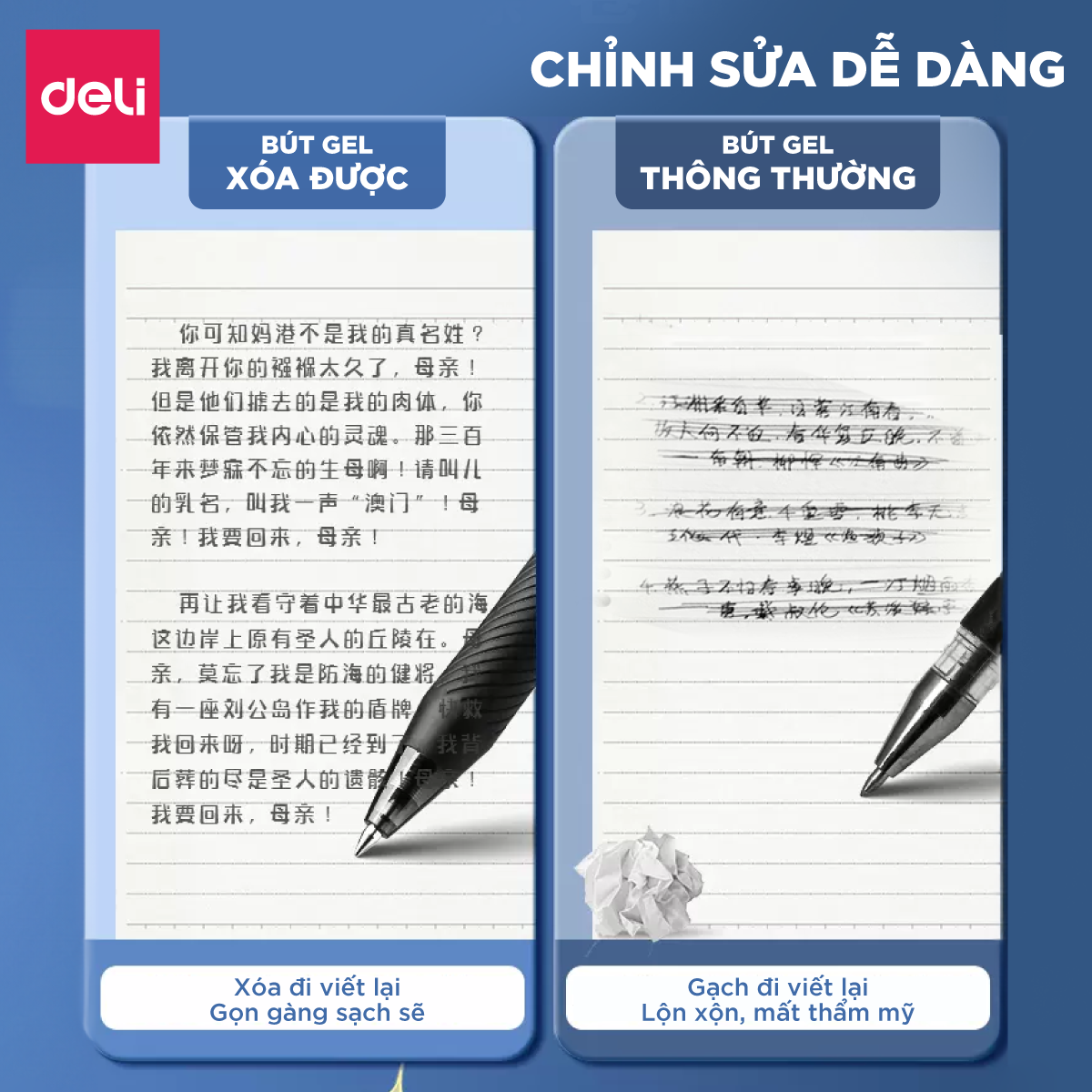 ✨Bút Gel Xóa Được Mực Xanh DELI - Bút Gel Bút Bi Mực Nước Bút Gel Bấm Ngòi 0.5mm, Viết Trơn Mượt Có Gôm Trên Nắp