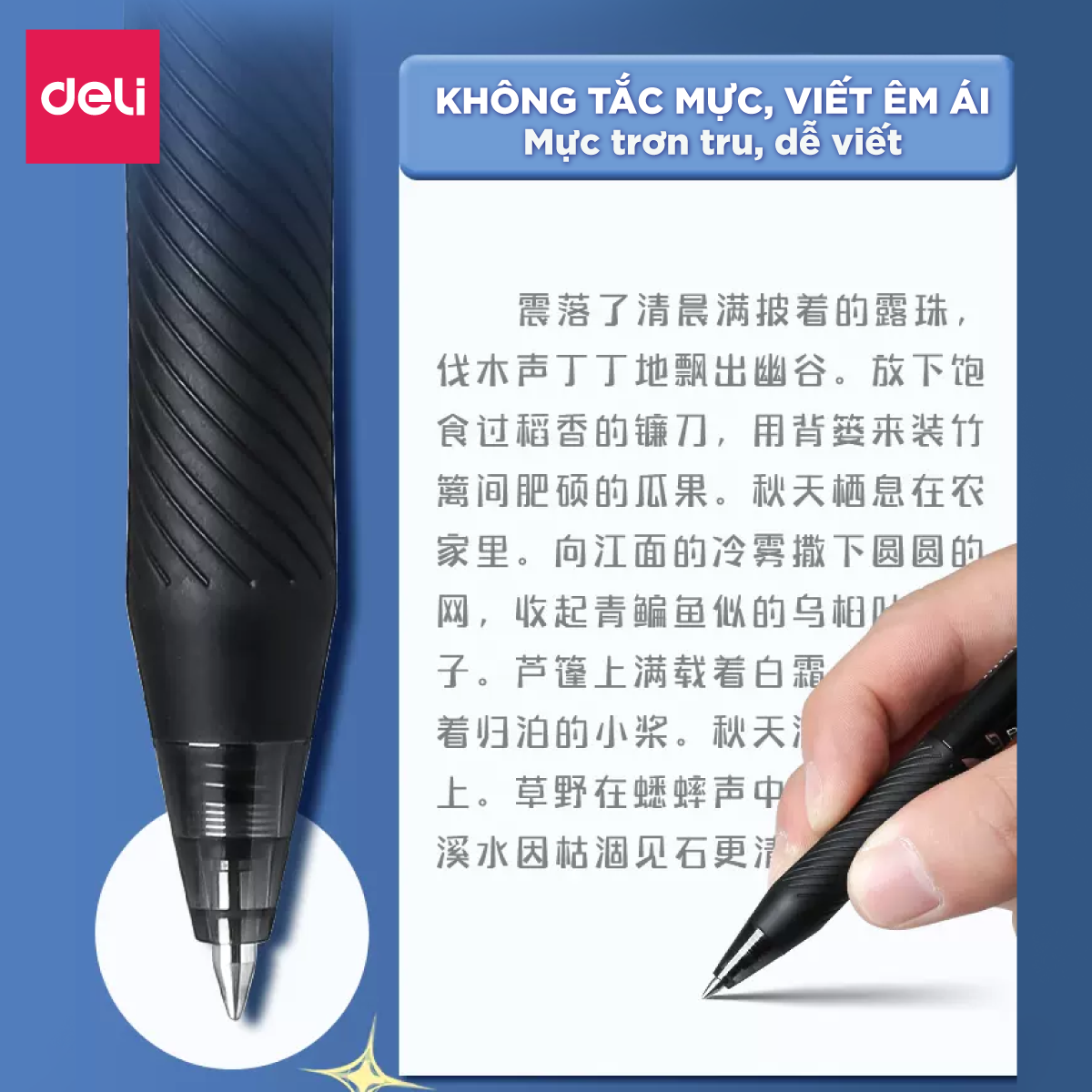 Bút thường sử dụng để viết ghi chú, soạn thảo văn bản trên giấy. Bút gel Deli, nhiều màu sắc cho bạn lựa chọn. Nét bút mượt mà, màu sắc tươi sang. Phù hợp với