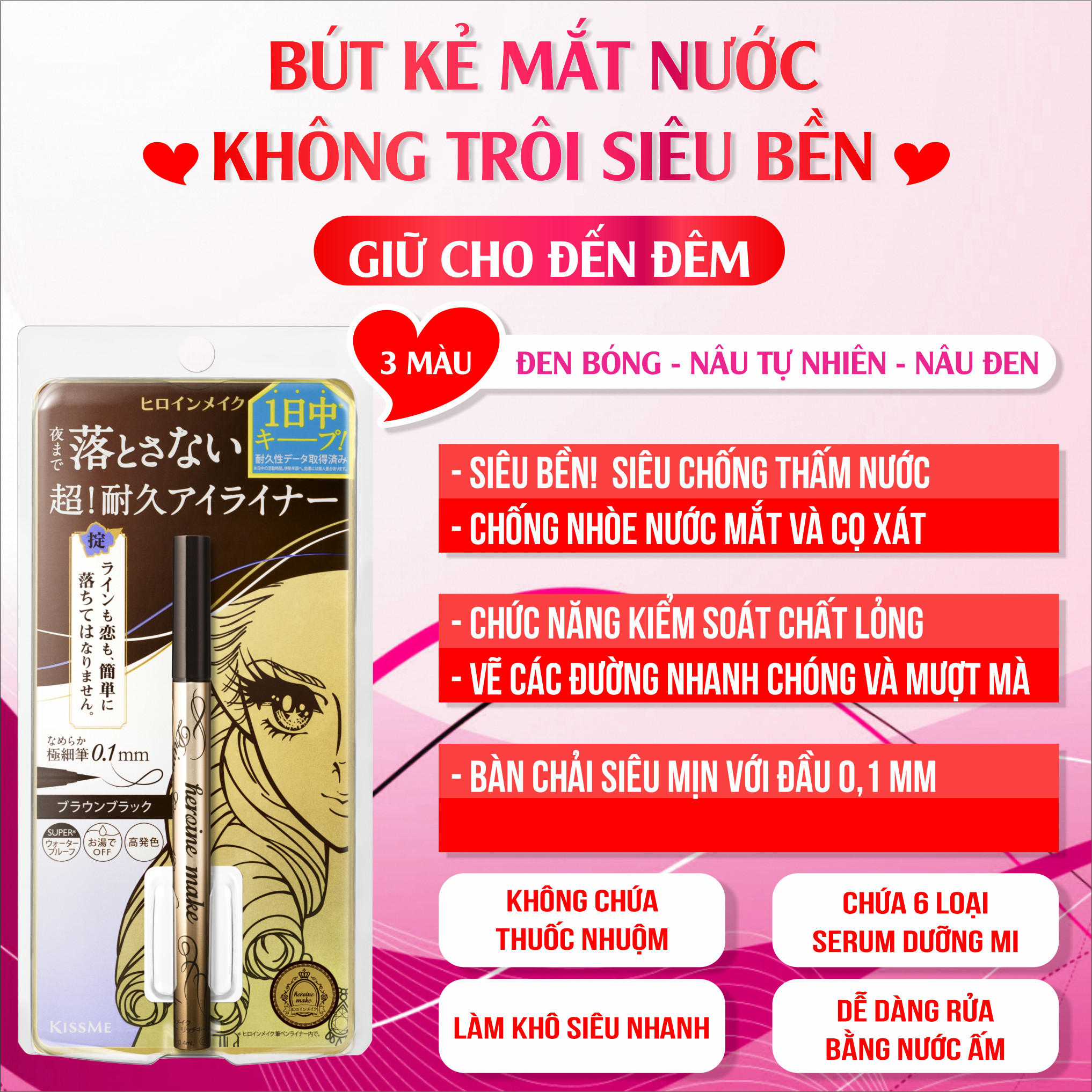 Bút Kẻ Mắt Nước Kissme Heroine Make Smooth Liquid Eyeliner Super Keep Siêu Chống Trôi (Nét Siêu Sắc Mãnh Siêu Mượt) 0.1g Thương hiệu: Kissme Xuất Xứ: Nhật Bản Khối lượng tịnh: 0.1g HSD: 5