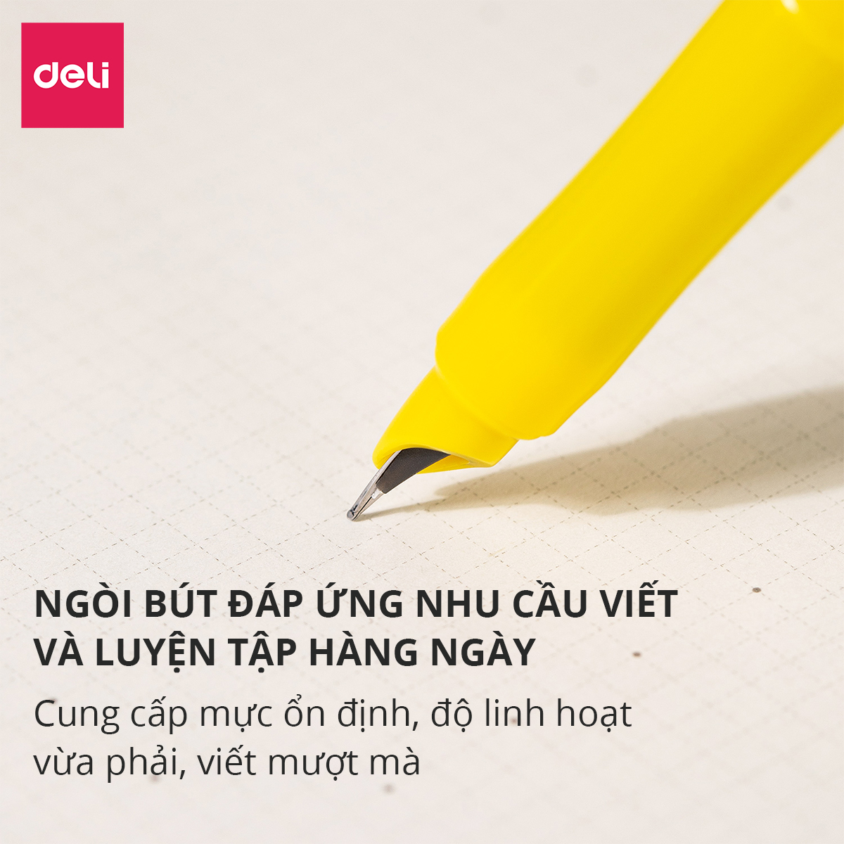 TÍNH NĂNG SẢN PHẨM: Bút máy cao cấp Deli, phù hợp với mọi đối tượng viết bút. Bút sử dụng mực ống, an toàn và hạn chế bẩn tay so với mực bơm thông thường