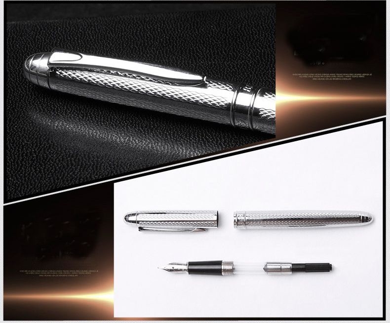 Thân kim loại mạ vàng hoặc bạc vân thân bút uốn lượn xẻ rãnh