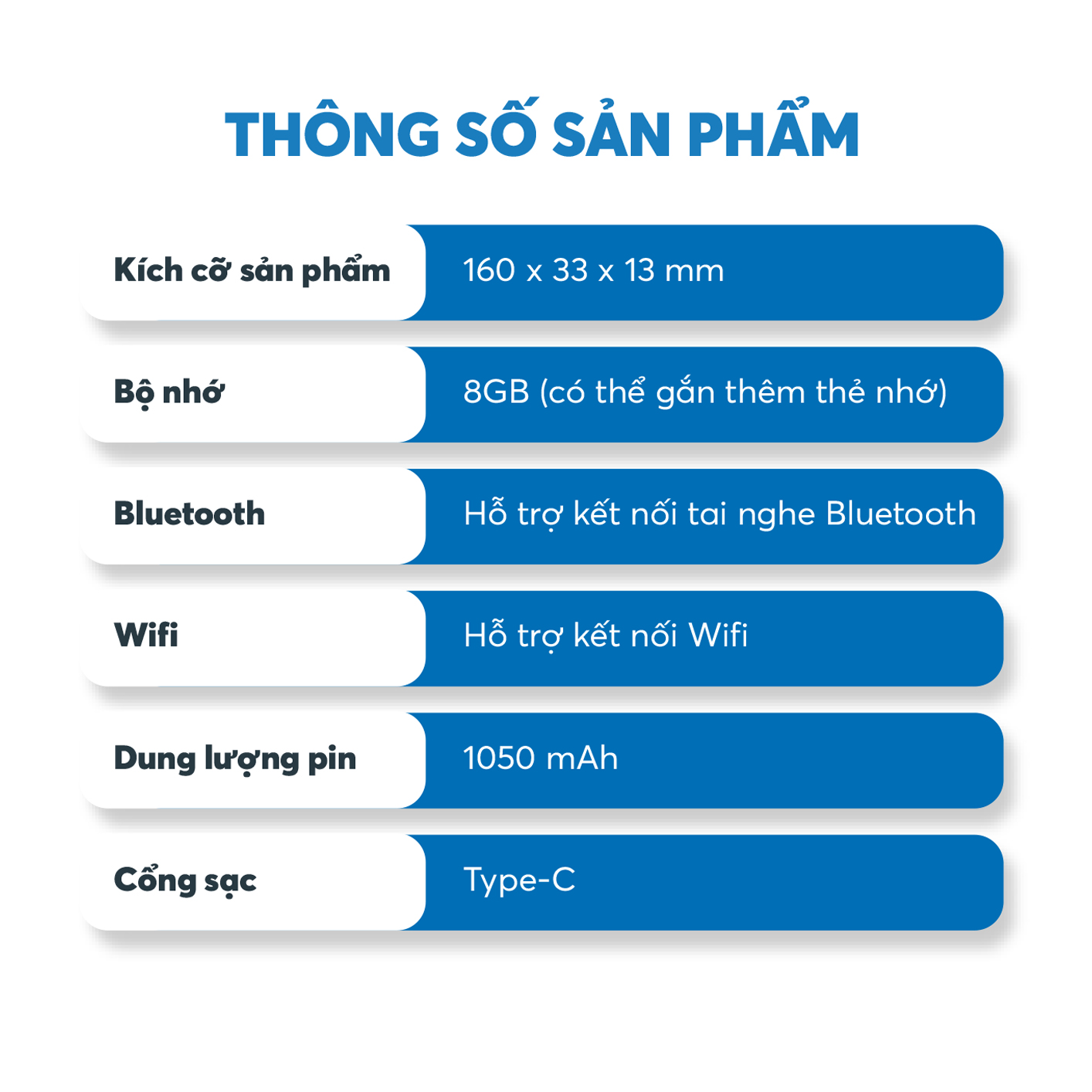Dung lượng pin: 1050mAh