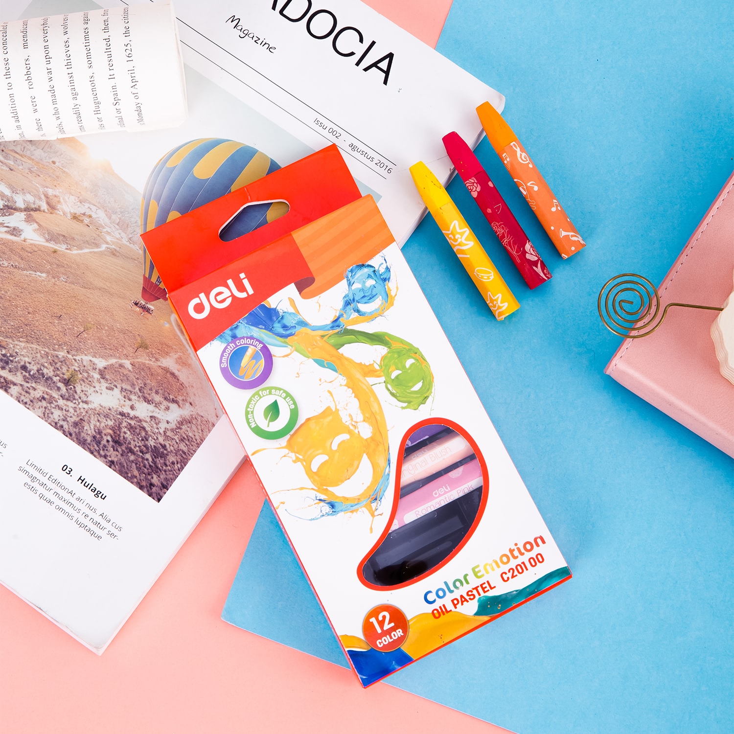️Bút sáp Deli có mực ra đều màu, phản quang tốt giúp màu sắc tươi sáng hơn, nhờ đó các tác phẩm của bé trở nên thật sinh động, bắt mắt.