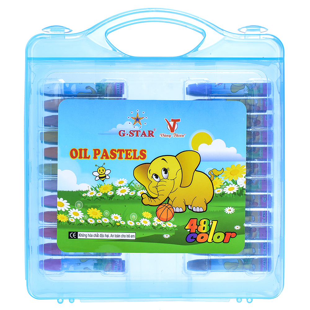 Bút Sáp Dầu G-Star 48 Màu 1981 - Với 48 sắc màu tươi sáng, bé có thể thoả sức sáng tạo nên những tác phẩm nghệ thuật của riêng mình. Bút ở dạng sáp dầu mềm, cho chất màu sáng, rất mịn, có độ phủ và độ bám giấy cao. Khi tô không bị ra vụn màu, có thể tô chồng, tô đậm mà màu vẫn mịn nét. Bút vừa tay cầm của trẻ, giúp trẻ dễ dàng tô vẽ, sáng tạo.