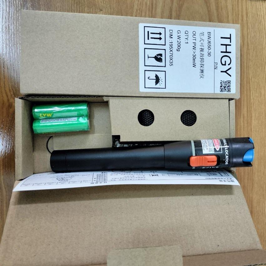 Giới thiệu sản phẩm: Bút soi cáp Quang 30km cao cấp BWJ650-30 Bút laser test cáp quang Model: BWJ650-30 Công suất phát: >30mW Đầu ra bước sóng : 650nm Chiều dài cáp tối đa: 30Km