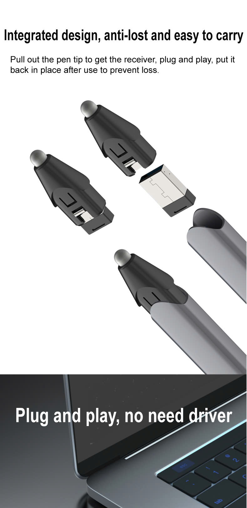 Phạm vi siêu dài: Công nghệ RF 2.4G, phạm vi không dây lên tới 15 mét. Omni-Direction: Điều hướng PC từ mọi hướng không dây. Tiết kiệm năng lượng: Tự động chờ, ngủ sâu và cảnh báo đèn