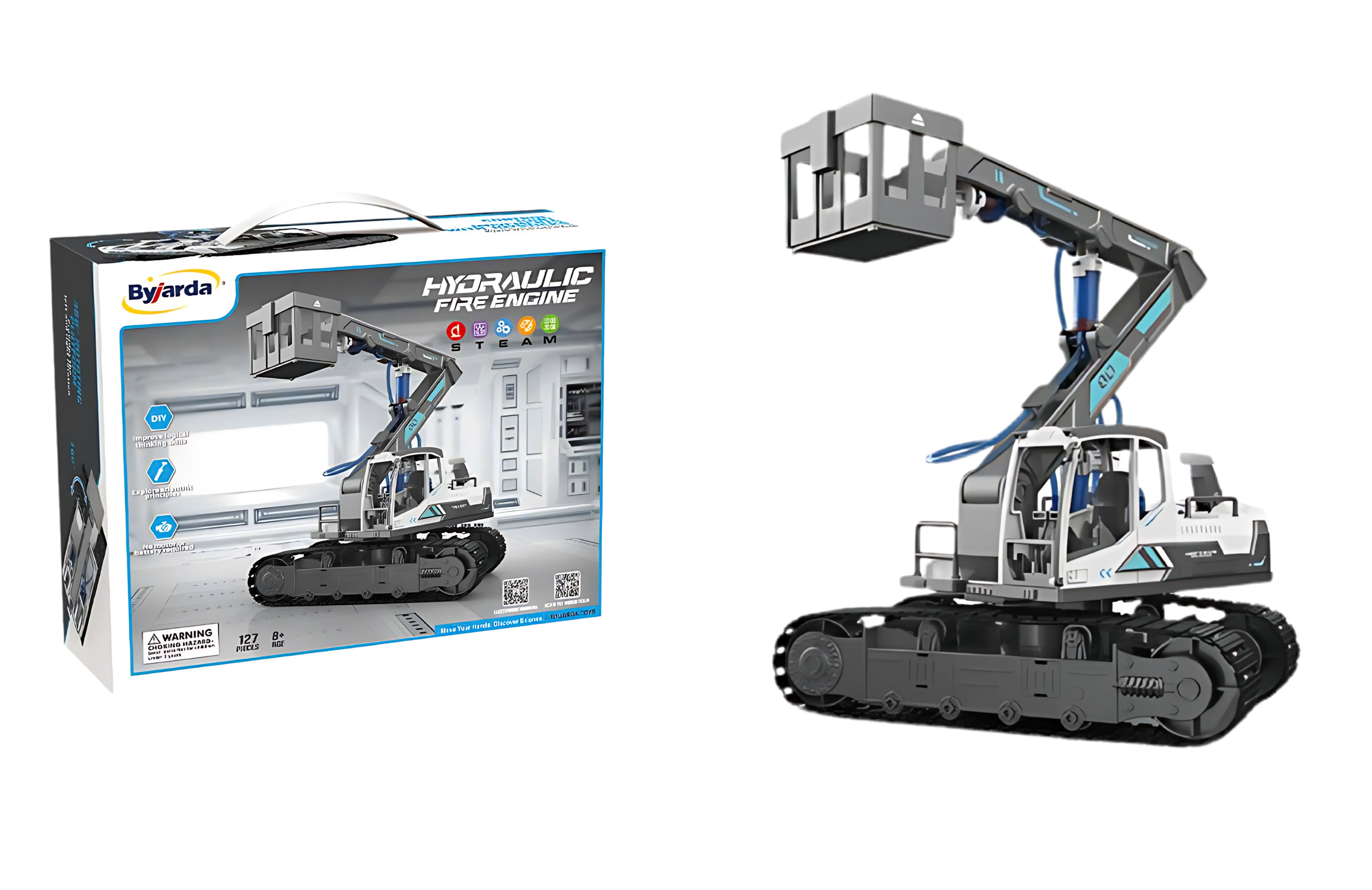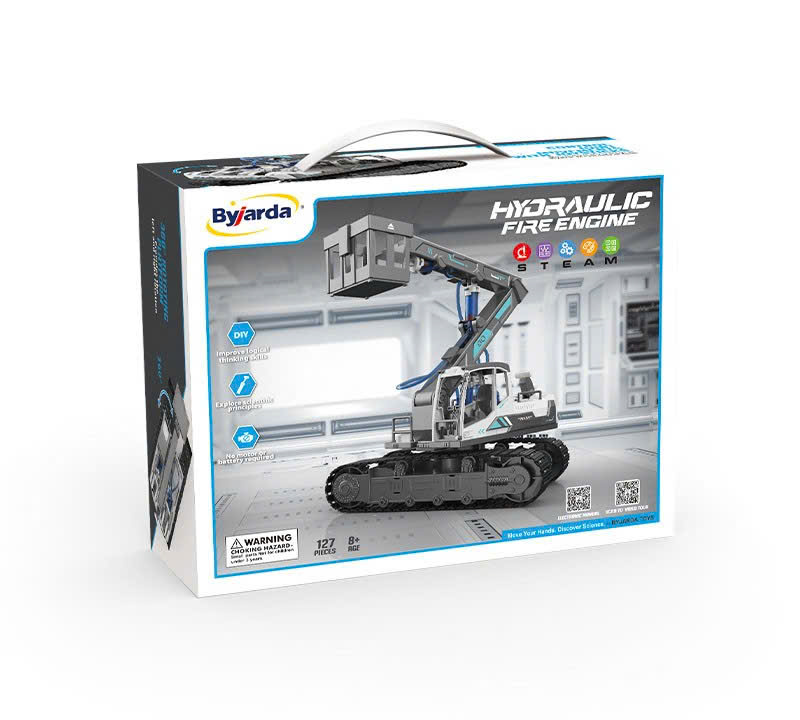 Xe cứu hỏa thủy lực cho bé tự lắp ráp 127 chi tiết, vận hành bằng 3 hệ thống thủy lực, giúp bé phát triển kỹ năng thực hành, hiểu nguyên lý Pascal và khám phá khoa học thông qua mô hình lắp ráp sinh động.