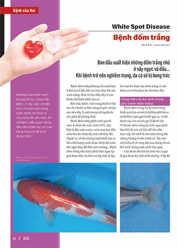 “CÁ KOI” là phiên bản tiếng Việt của Gekkan Nishikigoi (Koi Magazine do Shinkokai Nhật Bản phát hành), được phát hành định kỳ 3 tháng tại Việt Nam. Có trong tay quyển “CÁ KOI” nghĩa là có trong tay những thông tin mới, chuẩn xác và chính thống nhất về Koi nói chung, ngành Koi tại Nhật Bản và Việt Nam nói riêng.