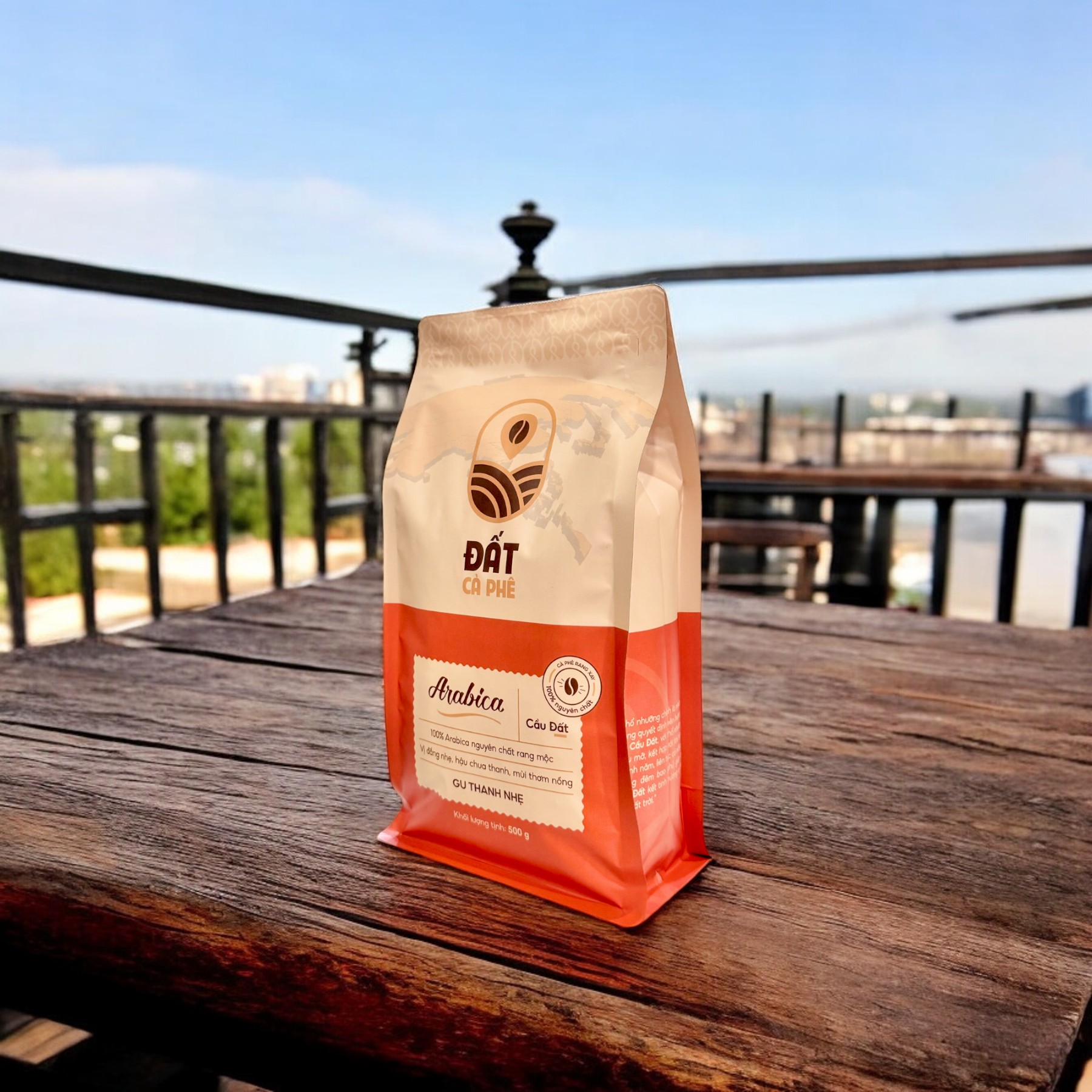 Cà phê Arabica nguyên chất từ Đất Cà Phê được chế biến từ 100% hạt cà phê Arabica hảo hạng, được trồng tại Cầu Đất, Đà Lạt – vùng đất nổi tiếng với khí hậu ôn hòa và thổ nhưỡng giàu dinh dưỡng, lý tưởng cho cây cà phê phát triển. Sản phẩm mang đến hương vị thanh nhẹ, vị chua dịu và mùi thơm tự nhiên, rất phù hợp cho những ai yêu thích cà phê nhẹ nhàng và tinh tế.