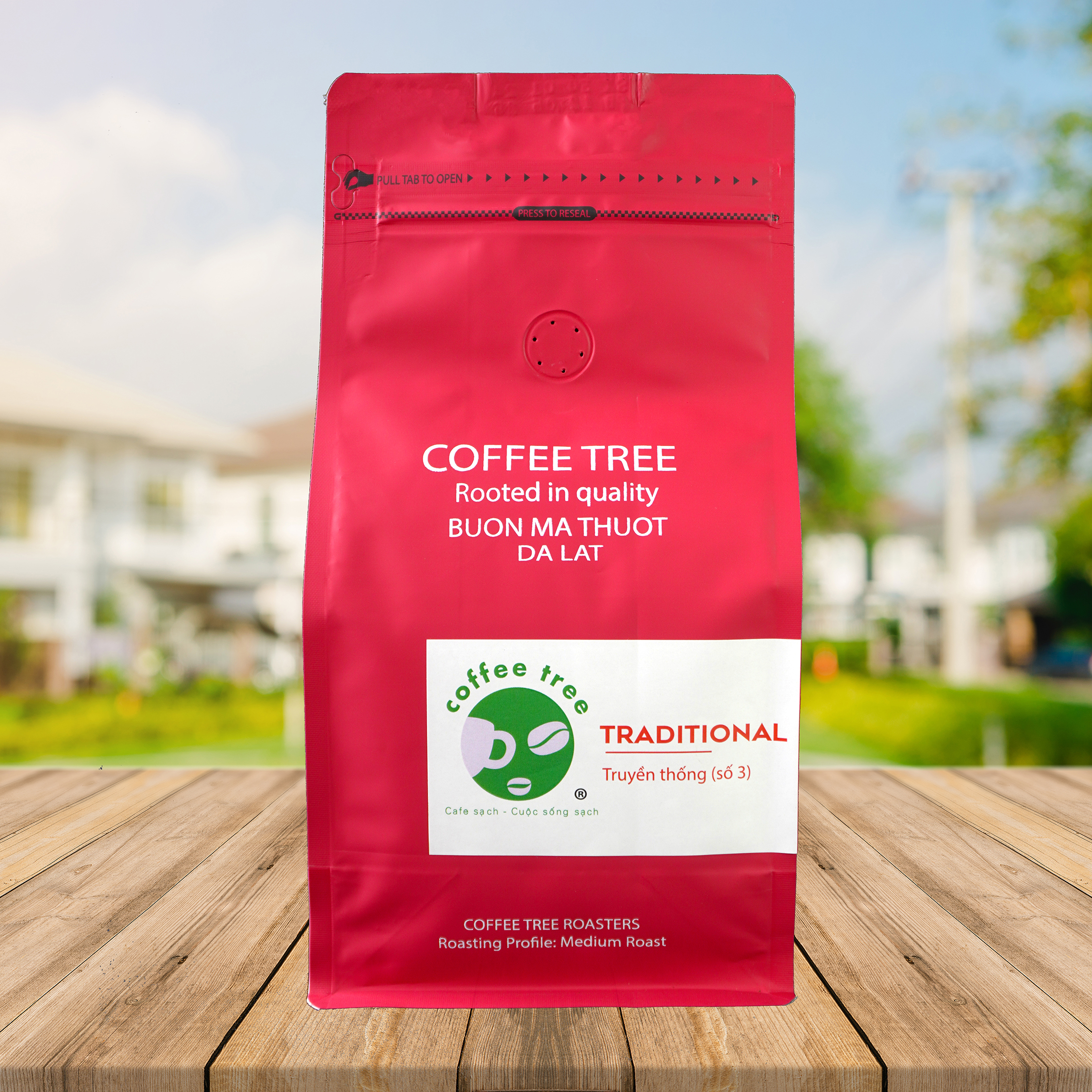 Cà phê nguyên chất, vị đắng không gắt, nhẹ, hơi ngọt, không đọng lại lâu vị đắng trong miệng, uống nước trà hay nước lọc tráng miệng là hết ngay.Vì lợi nhuận và không có kinh nghiệm, nhất là kiến thức về chế biến cà phê còn hạn chế, nên trên thị trường cà phê Việt nam còn rất hỗn độn, quá nhiều cơ sở chế biến cà phê ra đời, người tiêu dùng rất phân vân khi lựa chọn cho mình một loại cà phê ngon, thực phẩm an toàn.Tại nông trại Coffee Tree, cà phê được hái bằng tay, chọn lựa chỉ quả chín đỏ, tỉ lệ bắt buộc 90% quả đỏ, không hái tuốt, hái đại trà cả quả xanh lẫn đỏ. Sau khi chế biến ướt ra hạt cà phê nhân (green bean), được chọn lọc bằng tay một lần nữa loại bỏ hạt sạn, hạt mẻ, giữ hạt cà phê sạch, không mối mọt, nấm mốc. Hạt cà phê nhân được vận chuyển về nhà máy rang xay. Tại đây, hạt được rang bởi chuyên gia cà phê và kiểm soát chặt chẽ nhiệt độ, thời gian rang, chất lượng các mẻ rang hoàn toàn đồng nhất với nhau từ những thợ rang giàu kinh nghiệm và tâm huyết với cà phê.