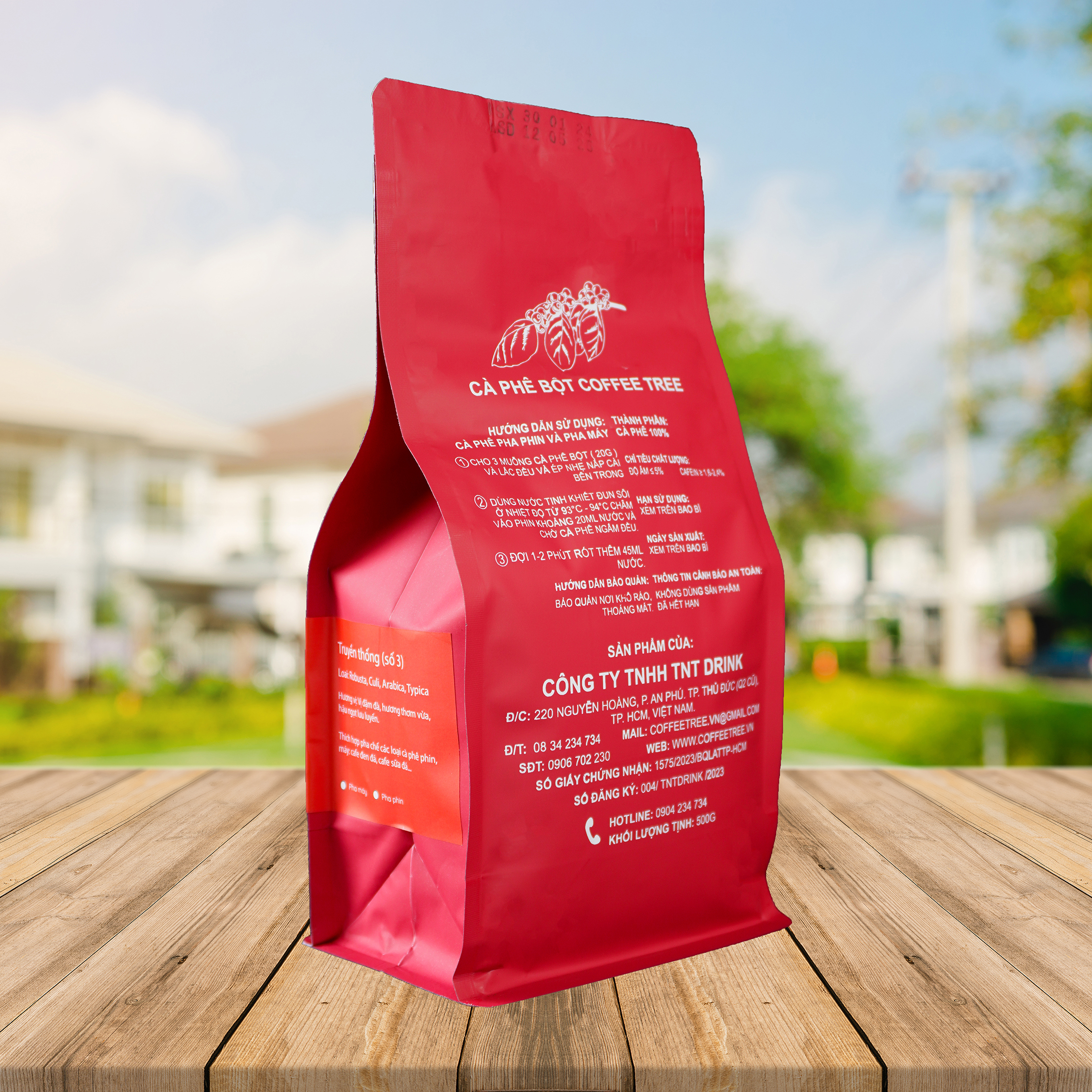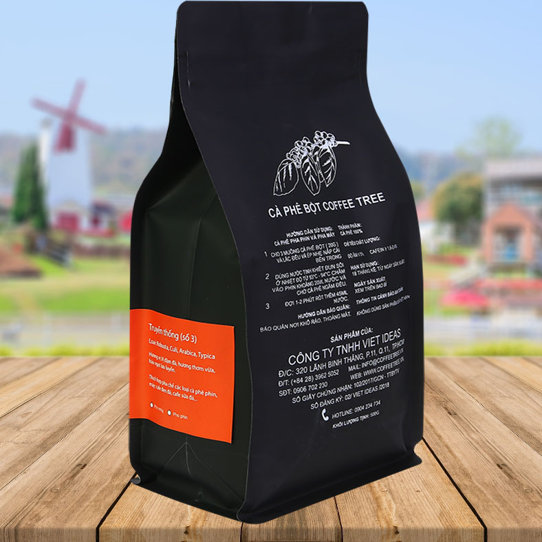 Thành phần / Ingredients: 100% Robusta. Hương vị / Flavor: Đắng đậm, sôcôla, mùi thuốc lá và hậu vị ngọt / Bold, chocolate, cigarette flavor and sweet after-taste. úi 500g / Bag 500gQuy cách / Type: