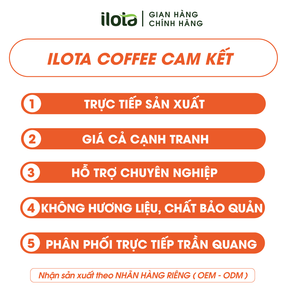 Mua tại TiktokCà phê ILOTA số 1 Espesso được chọn lựa nguyên liệu thượng hạng từ những hạt cà phê chin đỏ và rang bằng công nghệ Hotair tân tiến của máy rang Thuỵ Sĩ mang lại chất lượng vượt trội. Bạn cũng có thể dung để pha phin, pha coldbrew hoặc pha mokapot!