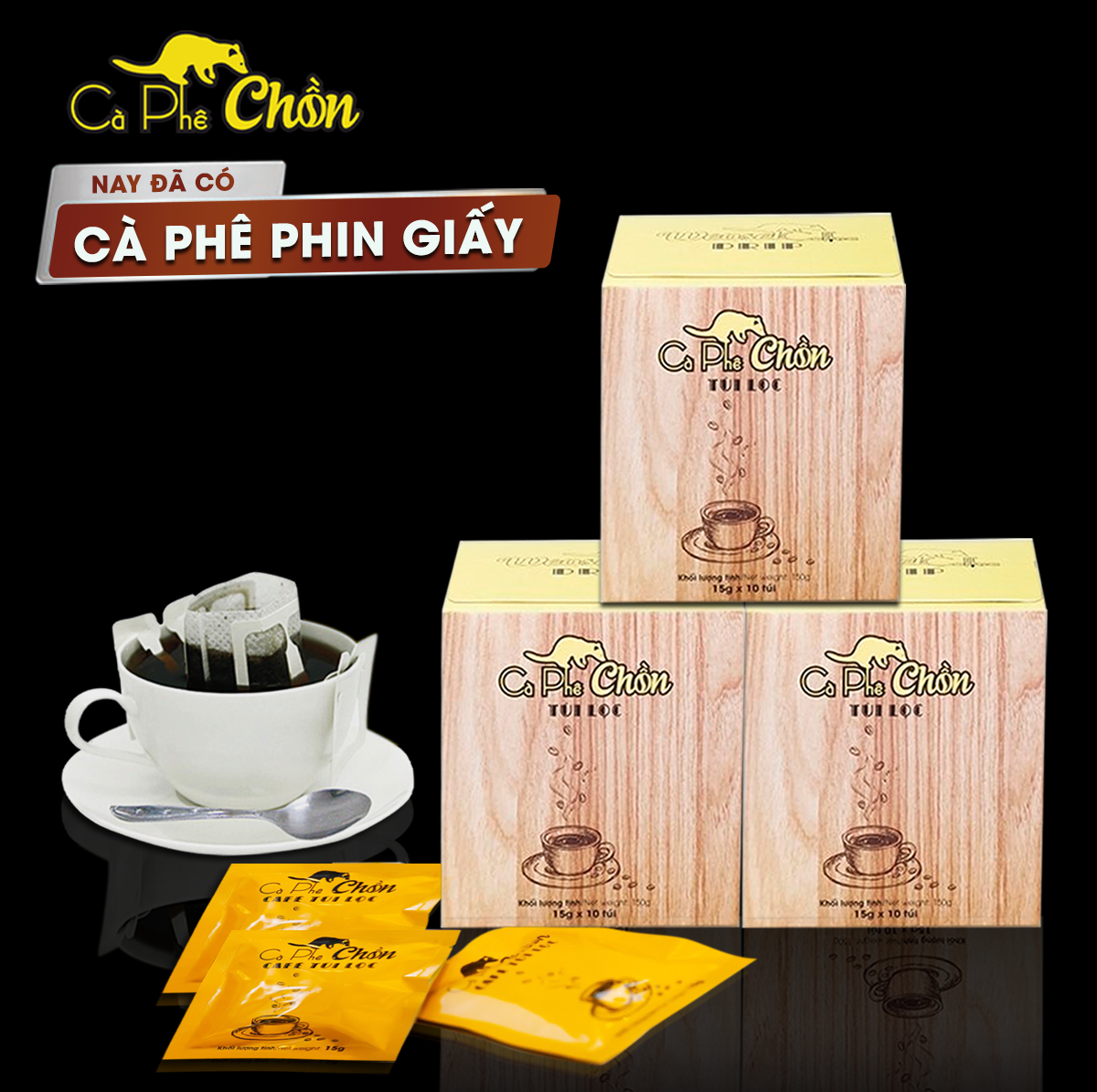 ✨Cà Phê Chồn phin giấy - Hộp 10 Gói x 15g