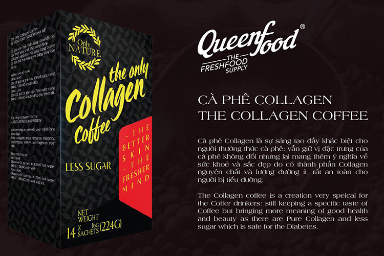 - Cà Phê Collagen Queenfood (2 Hộp - 14 Túi Nhỏ/Hộp) gúp tỉnh táo kết hợp với collagen giúp đẹp da. - Collagen đã và đang ngày càng trở nên quan trọng trong cẩm nang sức