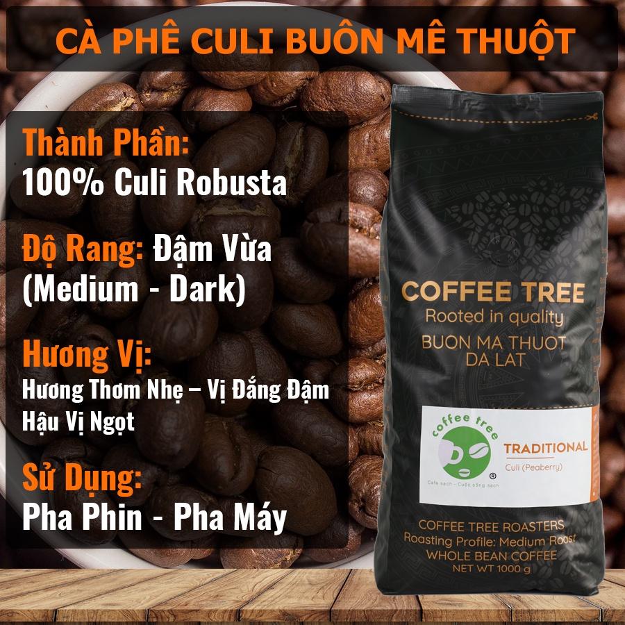 ✨Cà Phê Hạt CuLi Buôn Mê Thuột Nguyên Chất 100% - CoffeeTree - 1Kg - Hương Thơm Nhẹ, Vị Đắng Đậm, Hậu Vị Ngọt