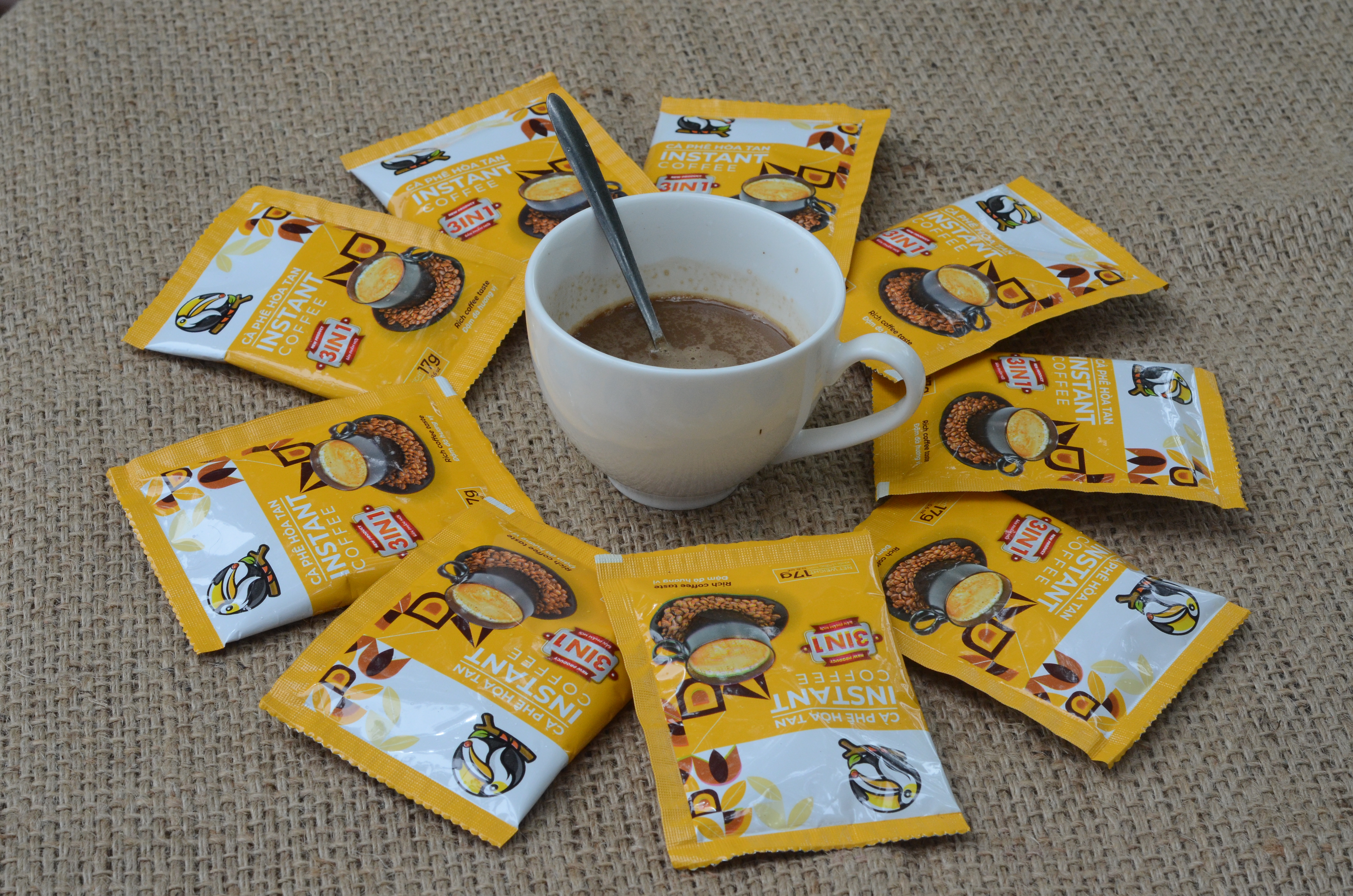- Thành phần: Đường, bột kem thực vật, cà phê hòa tan (13%)