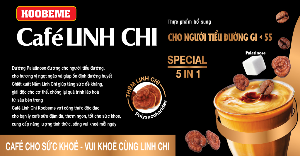 Café Linh Chi Koobeme Special 5IN1 cho người tiểu đường GI<55