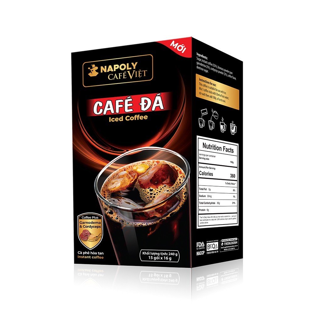 Cà Phê Hoà Tan Đen Đá 2IN1 Napoli Coffee – (16g/gói) - BỔ SUNG NẤM LINH CHI & ĐÔNG TRÙNG HẠ THẢO