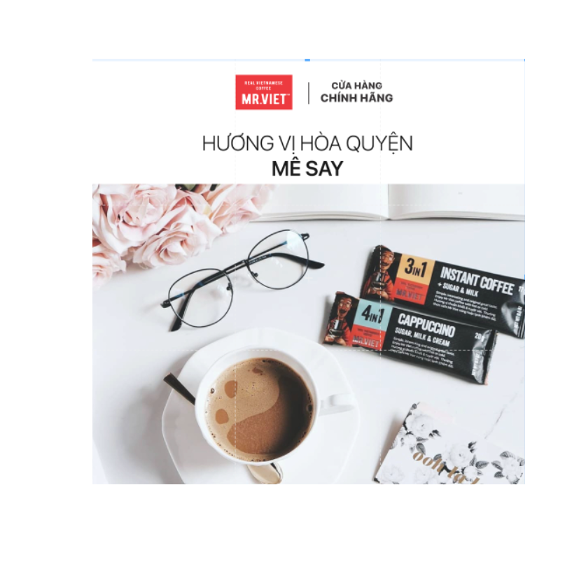 - Cà Phê Hòa Tan Đen MR.VIET mang hương vị đậm đà của hạt cà phê Arabica chất lượng cao với công nghệ sấy lạnh hiện đại giữ được hương vị cũng như hàm lượng