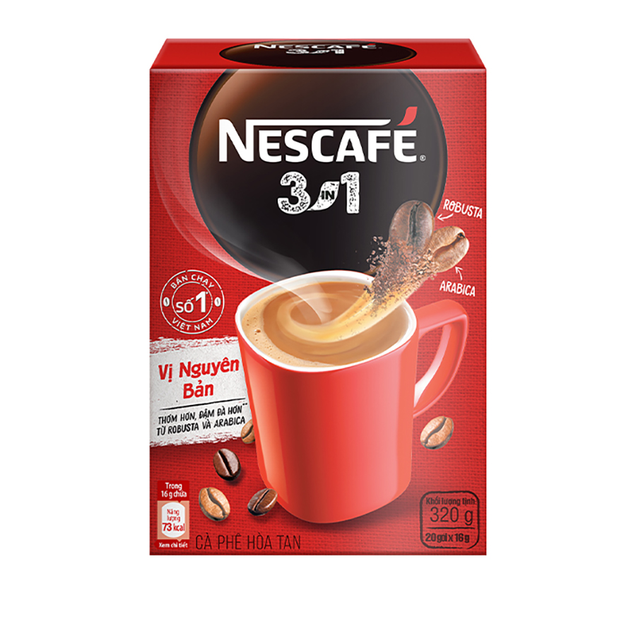 - NESCAFÉ 3IN1 VỊ NGUYÊN BẢN - Vị cà phê quốc dân quen thuộc, hài hòa, cân bằng giữa vị sữa và vị cà phê.