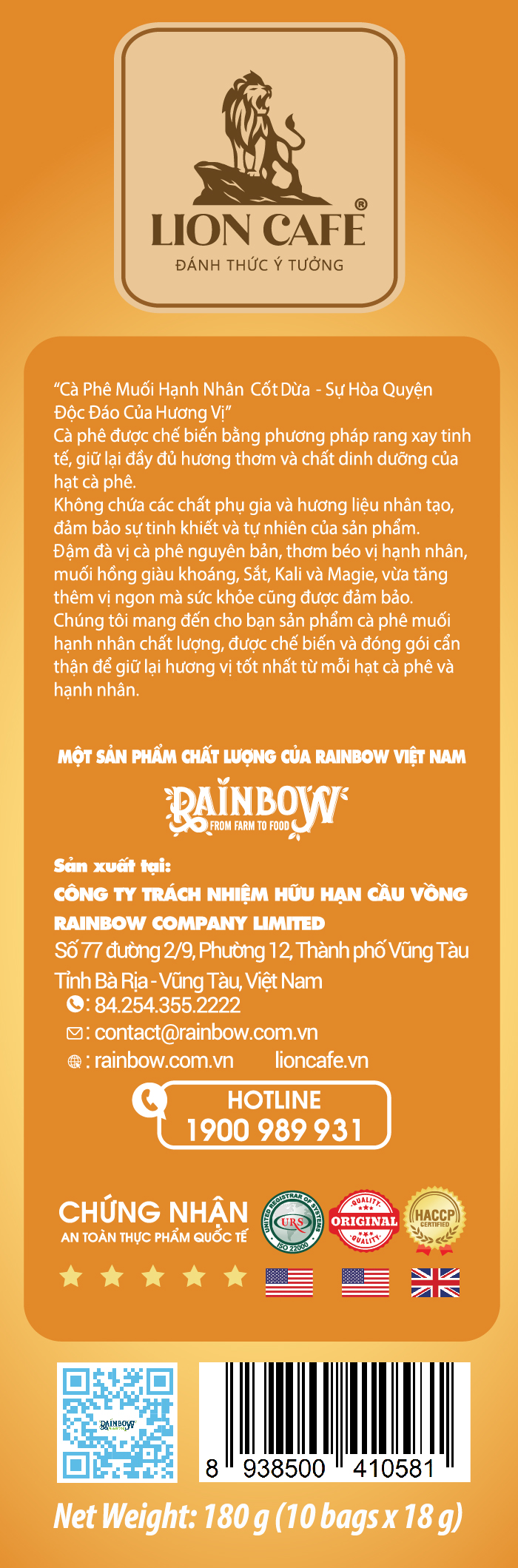Các chứng chỉ công ty và Cafe Hoà Tan Lion 4in1 Capuccino Vị Dừa đã được công nhận: