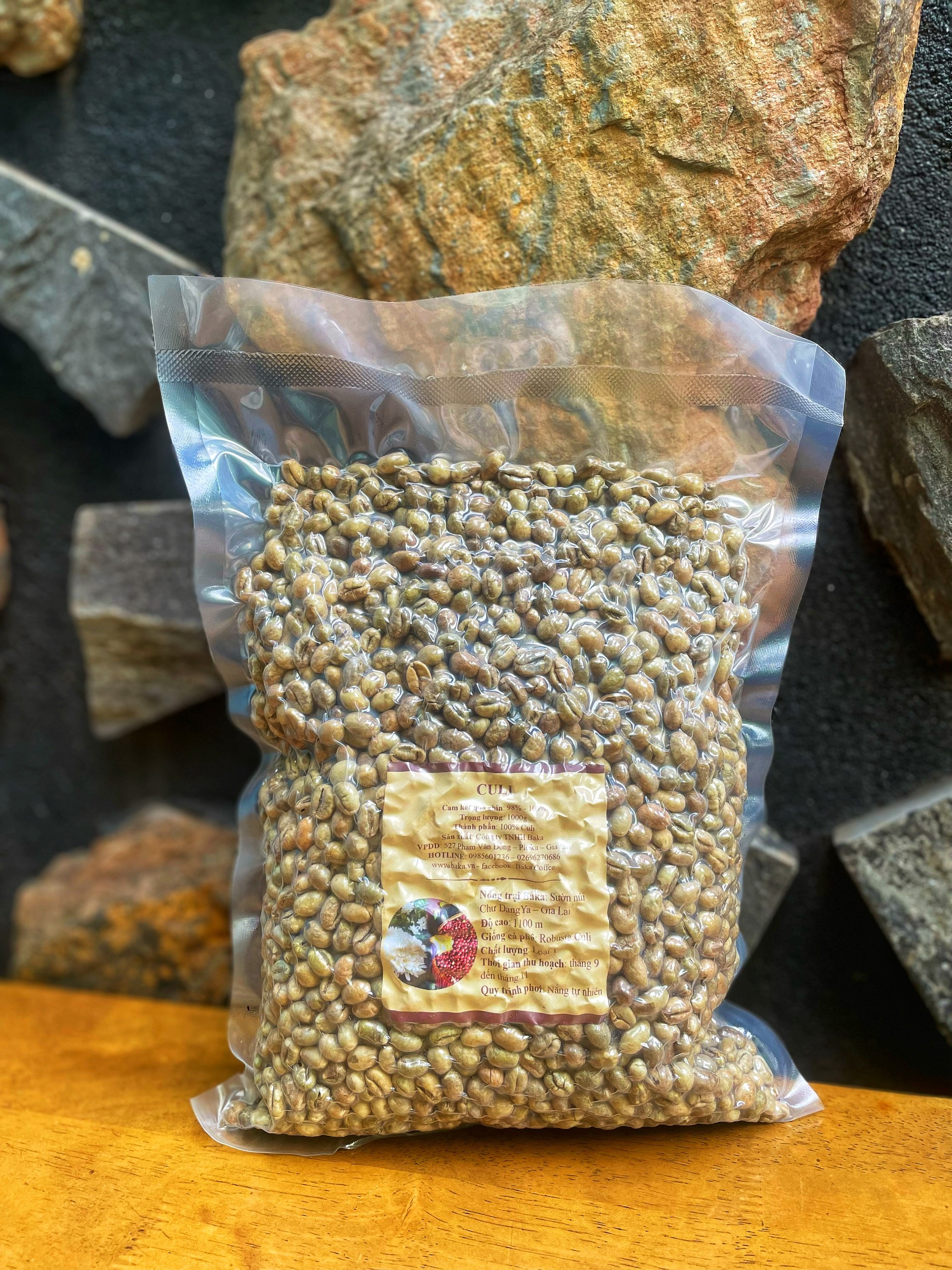 1. THÔNG TIN SẢN PHẨM: Tên Sản Phẩm: Cà Phê Nhân Xanh ROBUSTA. Thành Phần: 100% Hạt cà phê Robusta nhân xanh. Trọng Lượng: 1kg Xuất xứ: Bảo Lộc - Lâm Đồng - Việt Nam.