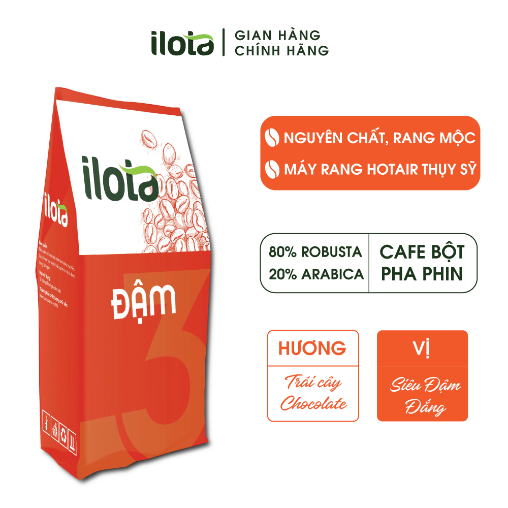 Mua tại TiktokCà phê pha phin ILOTA được chọn lọc từ những hạt cà phê chín đỏ từ Tây nguyên cùng phối trộn vơi cà phê Arabica Cầu Đất. Được rang bằng công nghệ Hotair của máy rang Thuỵ Sỹ và xay bằng công nghệ xay lạnh giúp cà phê thơm ngon hơn! Thành phần: 100% Arabica Robusta Hoàn toàn tự nhiên, không hoá chất, Không Hương Liệu Tuy là RANG MỘC HOÀN TOÀN nhưng Hương của Cà phê PHIN ILOTA vẫn rất thơm và không bị khét. 5 LÝ DO CHỌN ILOTA COFFFEE: