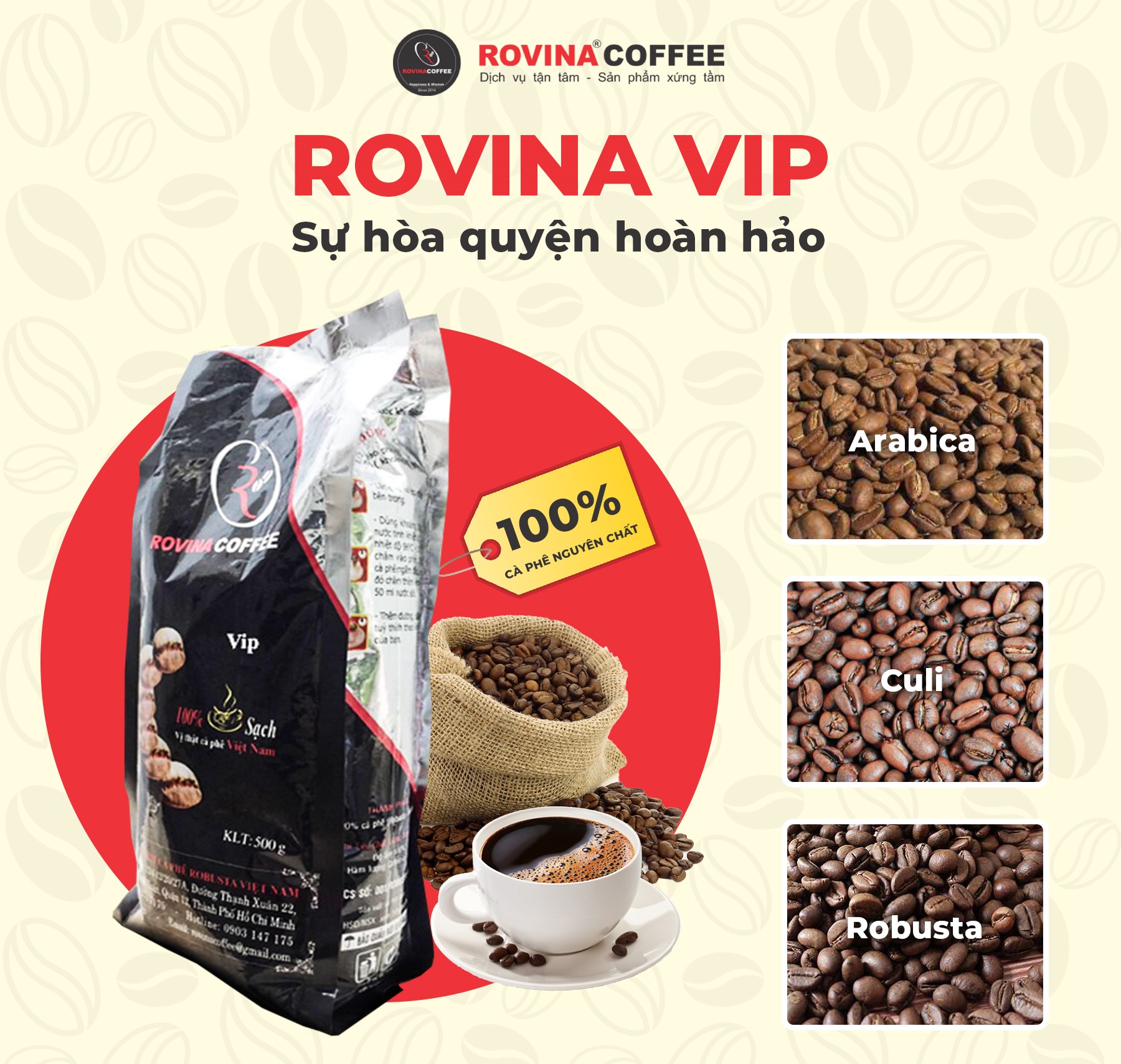 ✨Cà Phê Rovina VIP Pha Phin - Gói 500gr ( Xay Sẵn) Mùi Vị Đặc Trưng Cân Bằng Phù Hợp Với Khách Hàng Thích Uống Cafe Có Mùi Thơm Quyến Rũ, Chua Nhẹ. Đúng Gu Âu