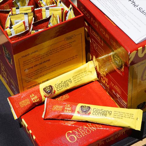 Sản phẩm Cà Phê Sâm ( Ginseng coffee ) làm hưng phấn trung khu thần kinh với nhân sâm giúp cơ thể sảng khoái, thư giãn, tăng cường sức khỏe chống lão hóa, kéo dài tuổi thọ, cải thiện giấc ngủ, kích thích tuần hoàn máu, cải thiện sinh lý, ngăn ngừa ung thư. Cà phê trong Ginseng Coffee có chứa nhiều hoạt chất chống oxy hóa, đặc bieetjlaf hai chất quan trọng giúp ngăn chặn quá trình hấp thu tinh bột và chất béo, ức chế thèm ăn,dó là caffein và axit cholorogenic.