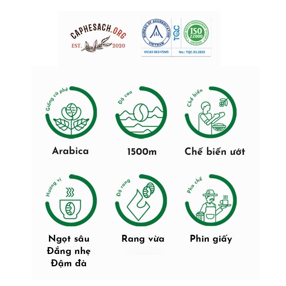 - Đặc tính: + Thể chất mạnh + Vị cân bằng - Thành phần: 100% Cà phê Arabica - Hướng dẫn sử dụng: Sản phẩm là cà phê nguyên hạt. Xay cà phê trước khi