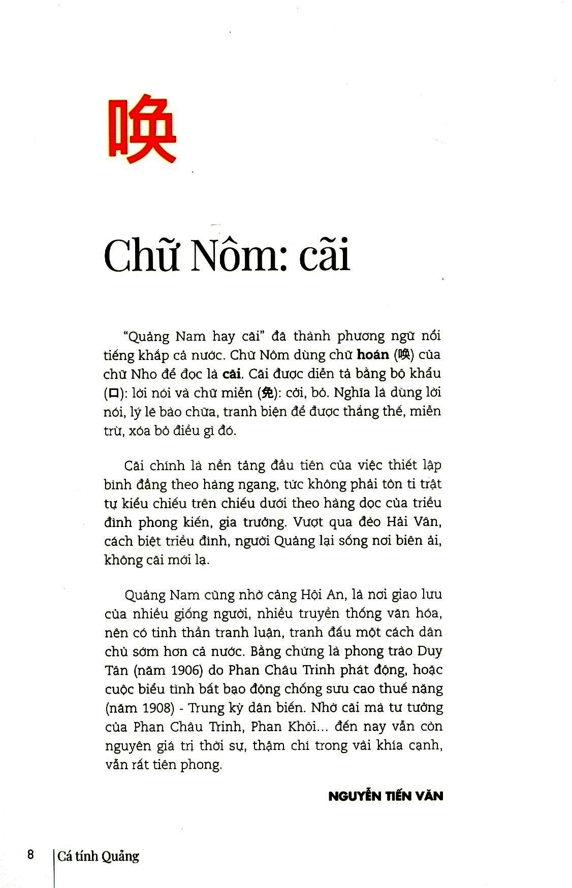 Xứ Quảng trong lịch sử đã là sự chung sống của Chăm-Việt, là cửa ngõ của giao thuơng quốc tế với nhiều bến cảng lớn, nơi Hội An là thành phố toàn cầu từ thời phong kiến, nên tinh thần dân chủ, việc chấp nhận sự khác biệt đã thành bản sắc. Như là một tiếp nối, các nhân vật trong sách này cũng được chọn lựa với tinh thần bình đẳng và dân chủ như vậy. Trong công việc riêng, mỗi nhân vật có những đóng góp, những gợi hứng đáng trân quý, các tác giả dựa vào đó để viết về họ, chứ không có ý phân “chiếu trên, chiếu dưới”.