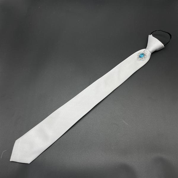 Cà vạt 6cm màu xám trắng thắt sẵn đính đá xanh sang trọngCà vạt 6cm màu xám trắng thắt sẵn đính đá xanh sang trọng