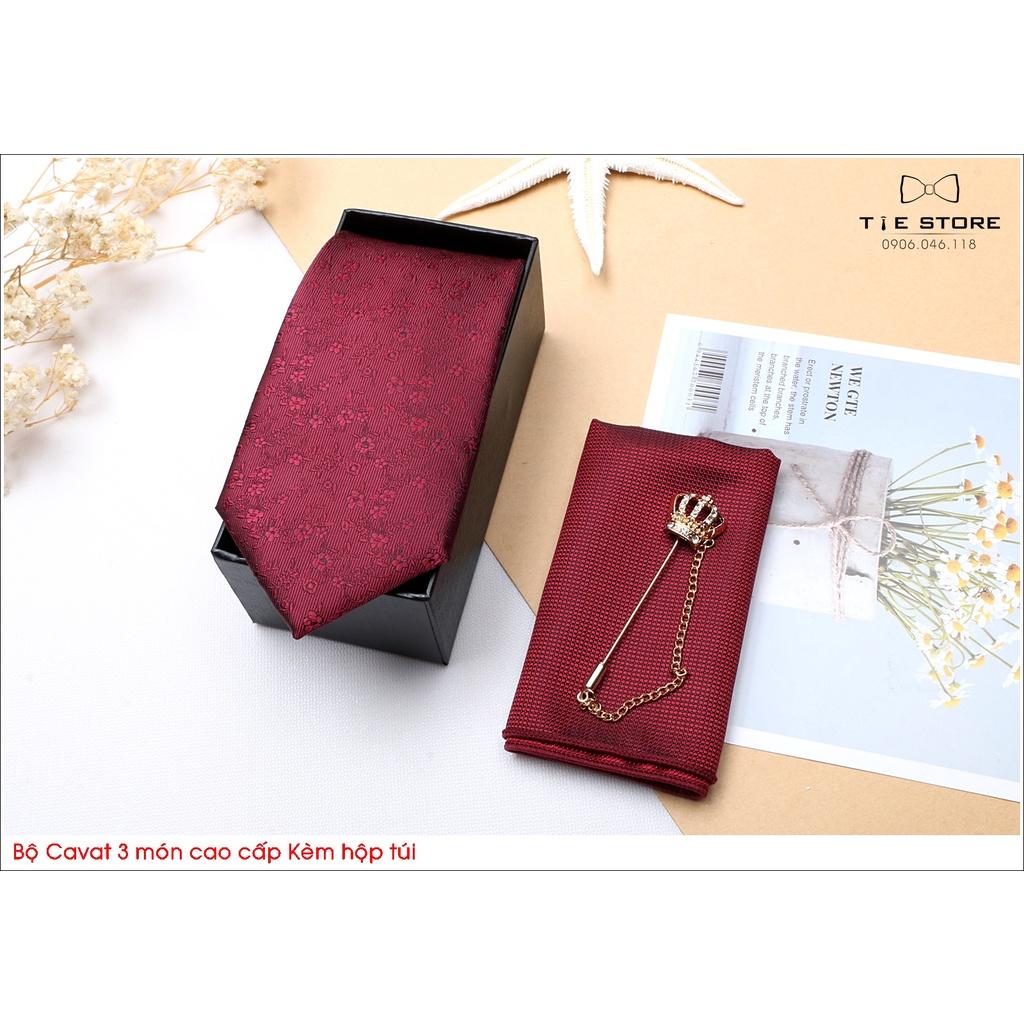 ✨Ca Vat bộ 3 món kèm hộp túi xách cao cấp, quà tặng chú rể, Cavat họa tiết chìm