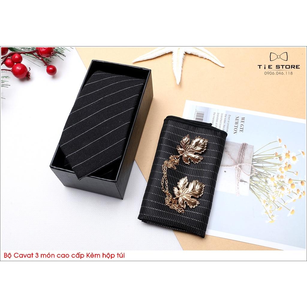 ✨Ca Vat bộ 3 món kèm hộp túi xách cao cấp, quà tặng chú rể, Cavat họa tiết đen kẻ