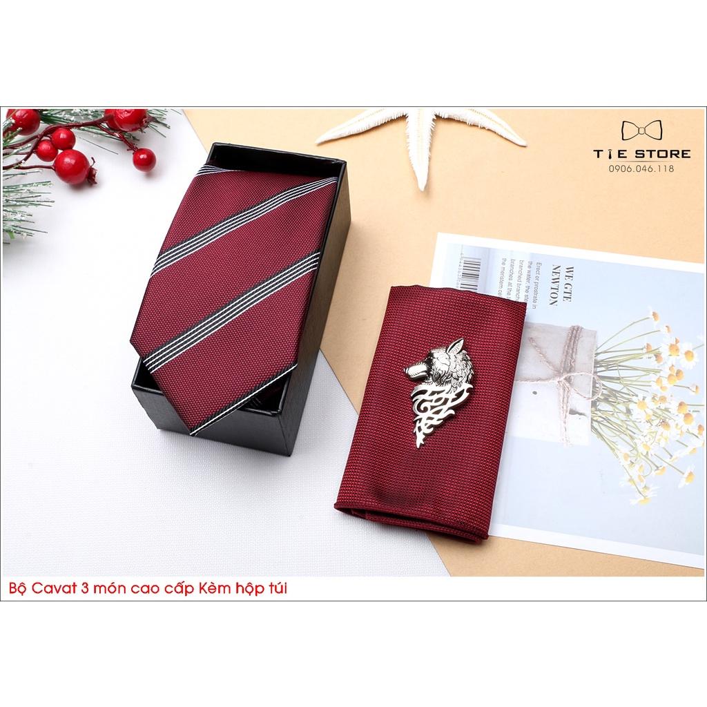 ✨Ca Vat bộ 3 món kèm hộp túi xách cao cấp, quà tặng chú rể, Cavat họa tiết đỏ kẻ