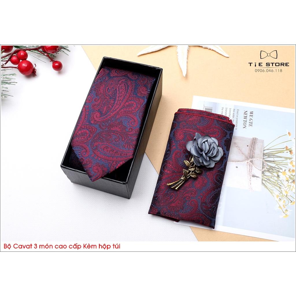 Cavat nam bản 8cm lót silk cao cấp nguyên hộp kèm khăn và khuy măng sét Giangpkc Qtp Sản phẩm cao cấp nguyên hộp quà tặng bản 8cm thích hợp cho trung niên - công