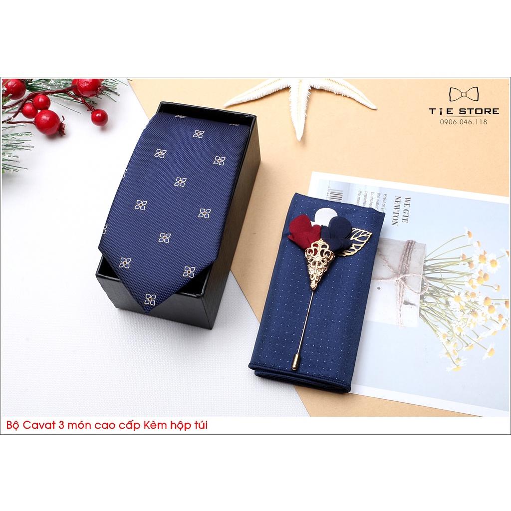 ✨Ca Vat bộ 3 món kèm hộp túi xách cao cấp, quà tặng chú rể, Cavat họa tiết xanh chấm