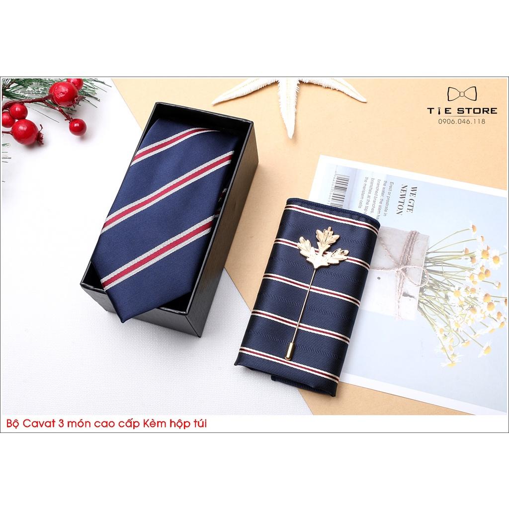Cavat nam bản 8cm lót silk cao cấp nguyên hộp kèm khăn và khuy măng sét Giangpkc Qtp Sản phẩm cao cấp nguyên hộp quà tặng bản 8cm thích hợp cho trung niên - công