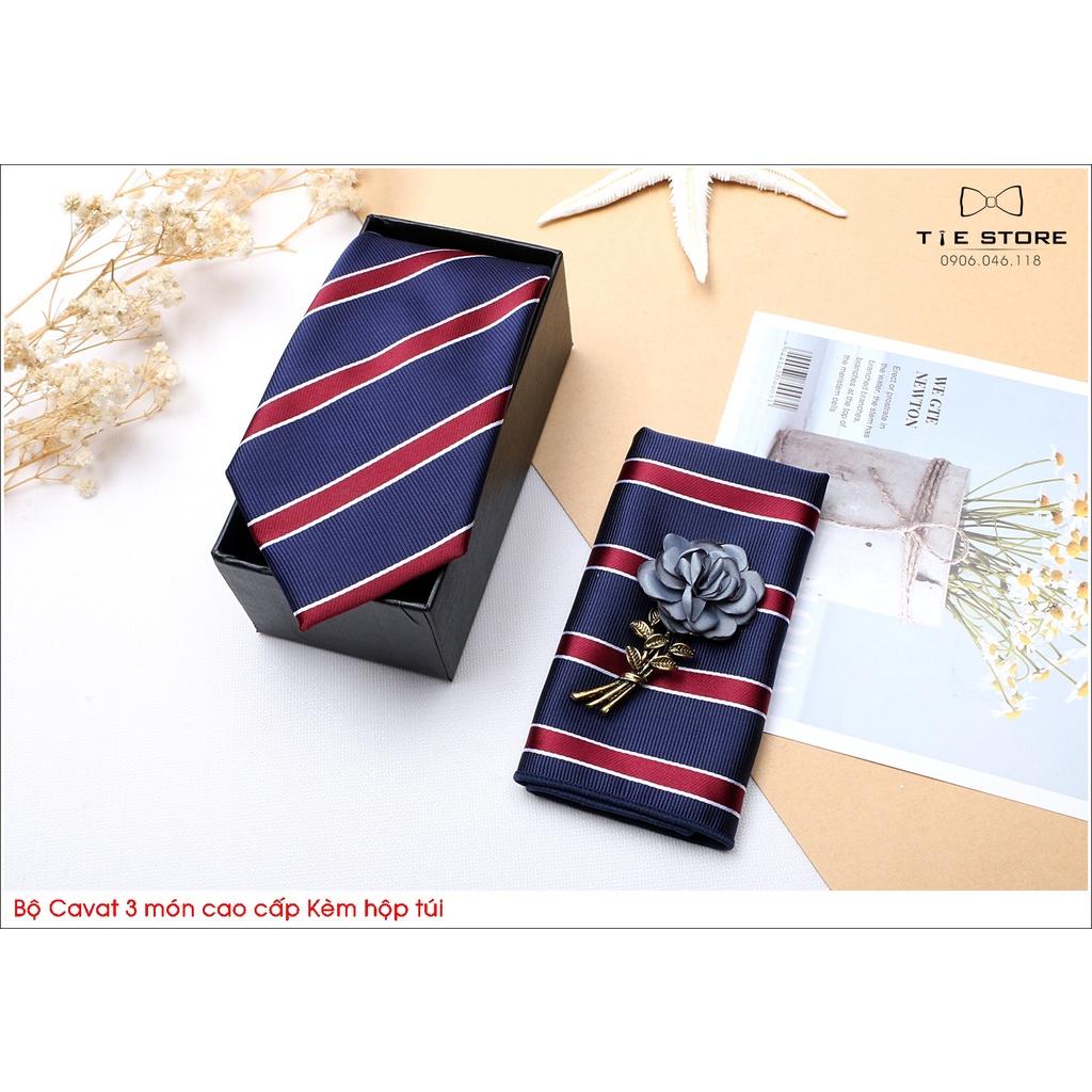✨Ca Vat bộ 3 món kèm hộp túi xách cao cấp, quà tặng chú rể, Cavat kẻ đỏ