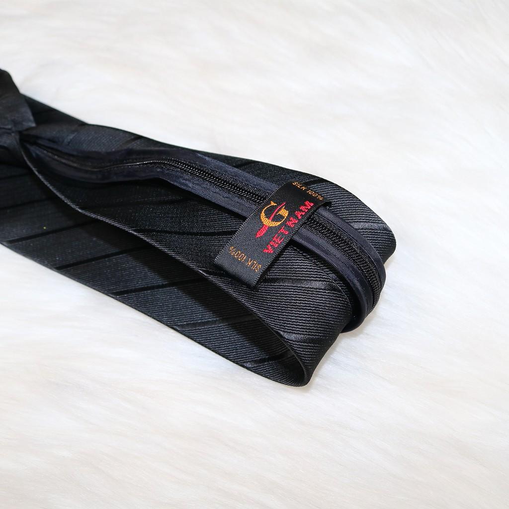 Cà vạt nam 8cm đen kẻ tăm chìm Cavat trung niên GiangPKC Chất liệu vải kẻ tăm - hàng đây 3 lớp . Dây kéo thắt sẵn tiện lợi