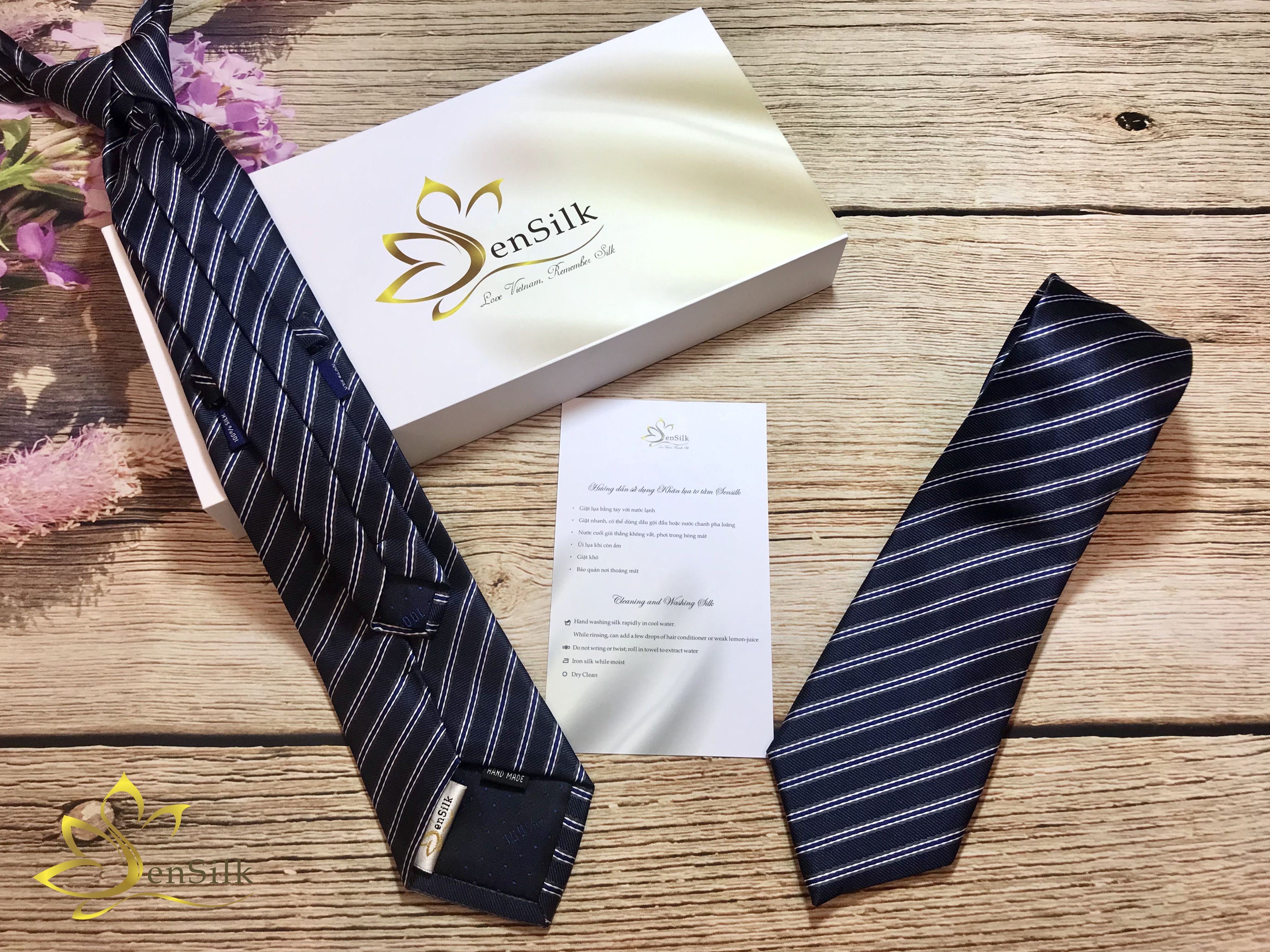 Cà Vạt Lụa SenSilk kết hợp giữa chất liệu lụa tơ tằm truyền thống với phương pháp in họa tiết hiện đại là món quà tuyệt vời đâm bản sắc văn hóa Việt dành tặng cho bạn bè,