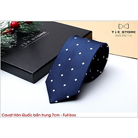 ✨Cà Vạt Nam Bản Trung 7Cm xanh chấm bi - Cavat Hàn Quốc Cao Cấp Full box