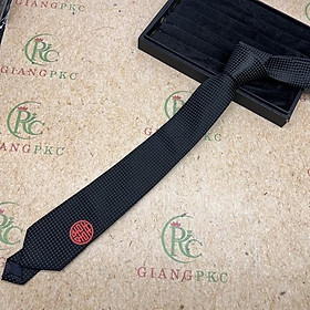 Cà vạt nam chú rể màu đen song Hỷ đỏ tròn 6cm tự thắt màu đen chấm