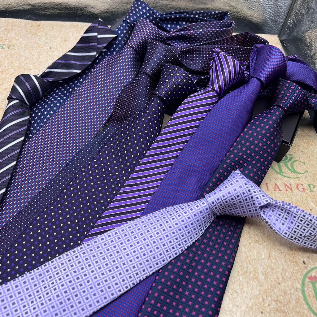 ✨Cà vạt nam màu tím trung niên bản 8cm dài tự thắt hàng dầy 3 lớp dành cho Lãnh Đạo Phụ kiện cưới Giang
