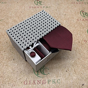 Cavat nam bản 8cm lót silk cao cấp nguyên hộp kèm khăn và khuy măng sét Giangpkc Qtp Sản phẩm cao cấp nguyên hộp quà tặng bản 8cm thích hợp cho trung niên - công