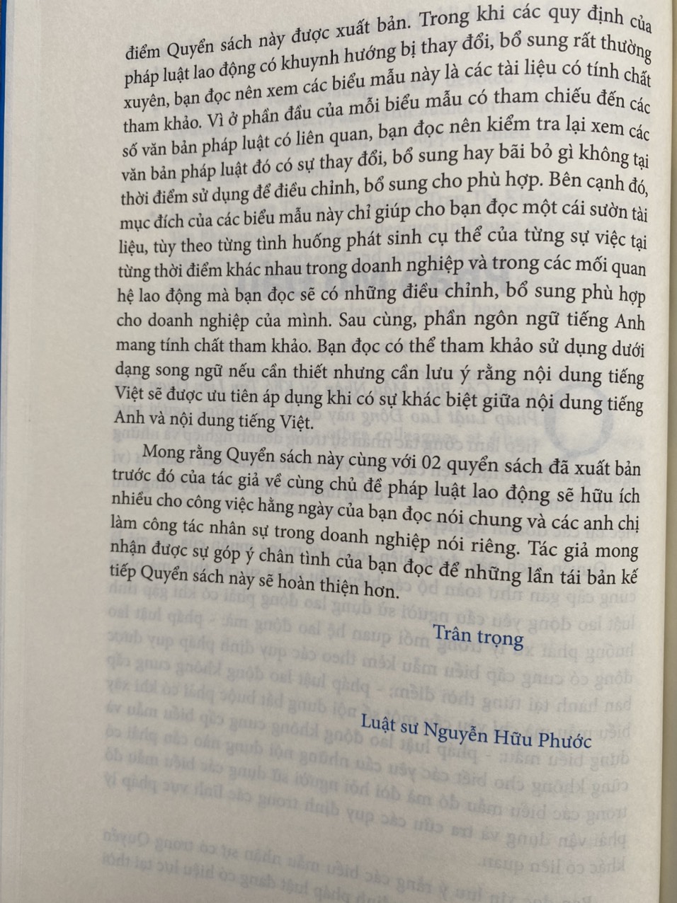 Các biểu mẫu không chỉ giúp cho độc giả các sườn tài liệu, mà tùy theo từng tình huống phát sinh cụ thể của từng vụ việc tại từng thời điểm khác nhau trong doanh nghiệp và trong các mối quan hệ lao động mà độc giả sẽ có những điều chỉnh, bổ sung phù hợp cho doanh nghiệp của mình.