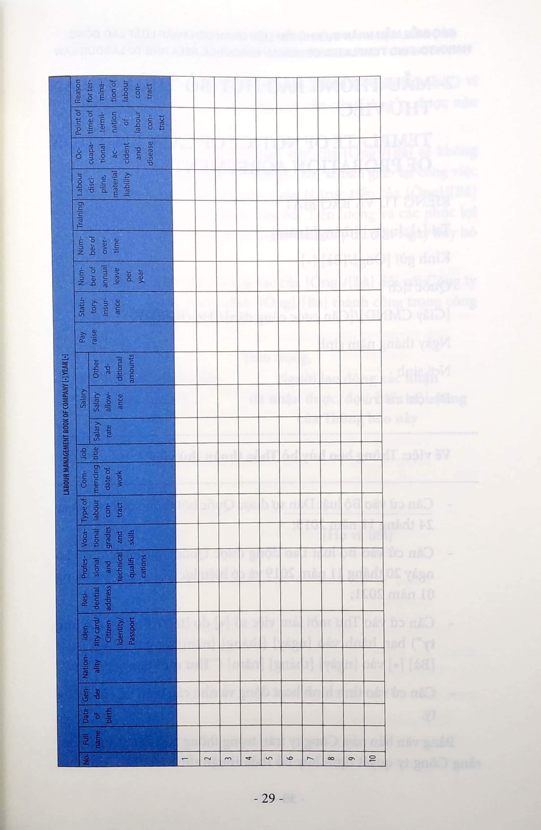 Quyển sách này được biên soạn với mong muốn của tác giả là cung cấp gần như toàn bộ các biểu mẫu nhân sự cần thiết mà pháp luật lao động yêu cầu người sử dụng lao động phải có khi gặp tình huống phải xử lý trong mối quan hệ lao động mà: – pháp luật lao động có cung cấp biểu mẫu kèm theo các quy định pháp quy được ban hành tại từng thời điểm; – pháp luật lao động không cung cấp biểu mẫu mà chỉ yêu cầu một số nội dung bắt buộc phải có khi xây dựng biểu mẫu; – pháp luật lao động không cung cấp biểu mẫu và cũng không cho biết các yêu cầu những nội dung nào cần phải có trong các biểu mẫu đó mà đòi hỏi người sử dụng các biểu mấu đó phải vận dụng và tra cứu các quy định trong các lĩnh vực pháp lý khác có liên quan.