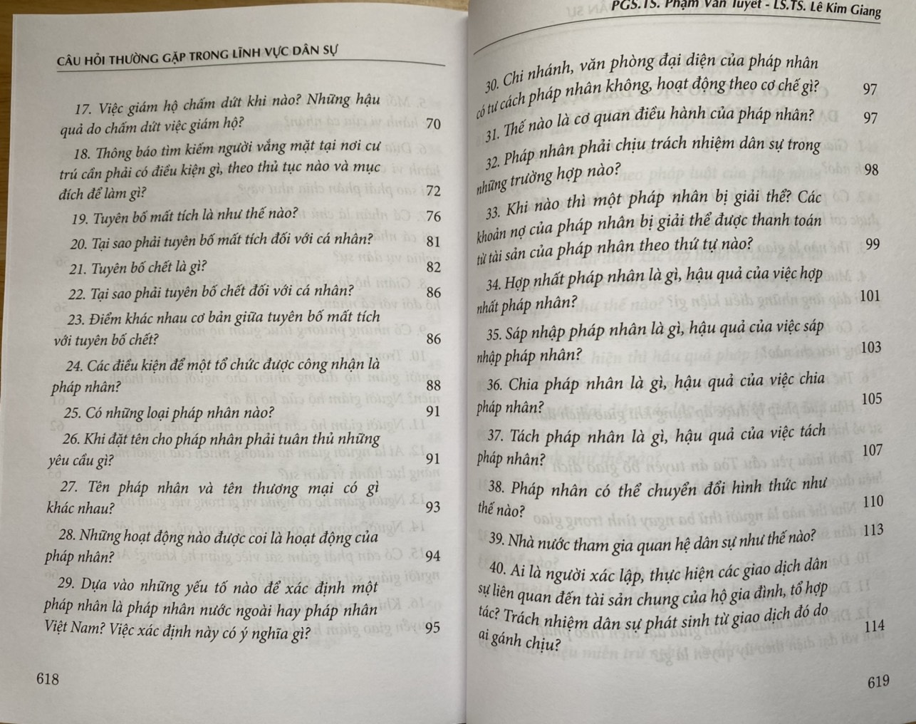 Câu Hỏi Thường Gặp Trong Lĩnh Vực Dân Sự Tác giả: PGS.TS. Phạm Văn Tuyết - LS.TS. Lê Kim Giang Nhà xuất bản: NXB Tư Pháp Nhà phát hành: Dân Hiền Năm xuất bản: 2022