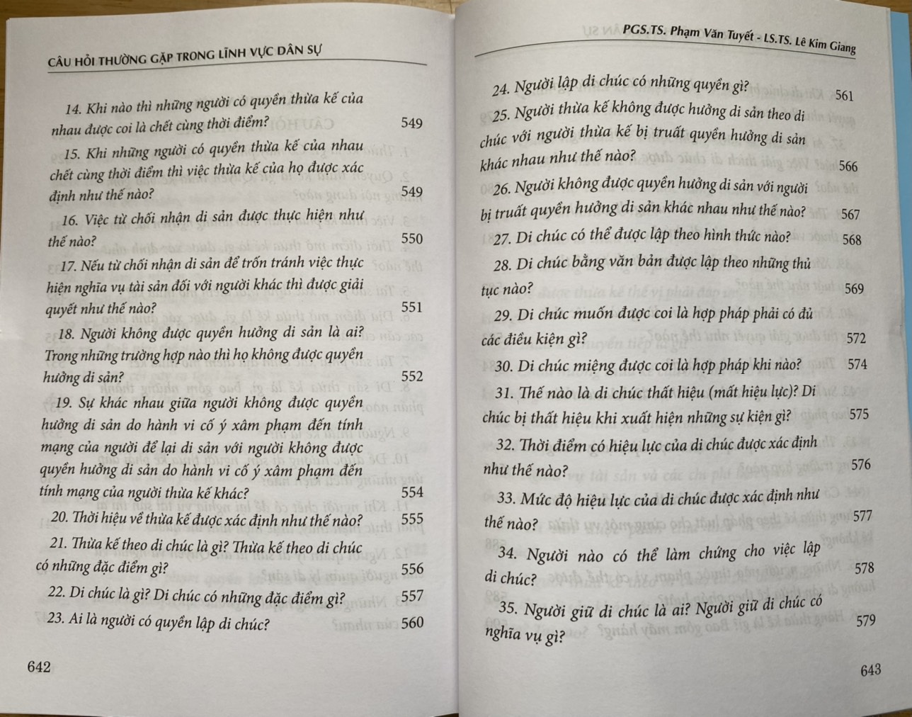 Pháp luật về thừa kế và thực tiễn giải quyết tranh chấp(Tái bản lần thứ nhất, có chỉnh sửa bổ sung theo bộ luật dân sự 2015)Tác giả: PGS. TS. Phạn Văn Tuyết, TS. Lê Kim GiangNXB: Tư PhápXuất bản: tháng