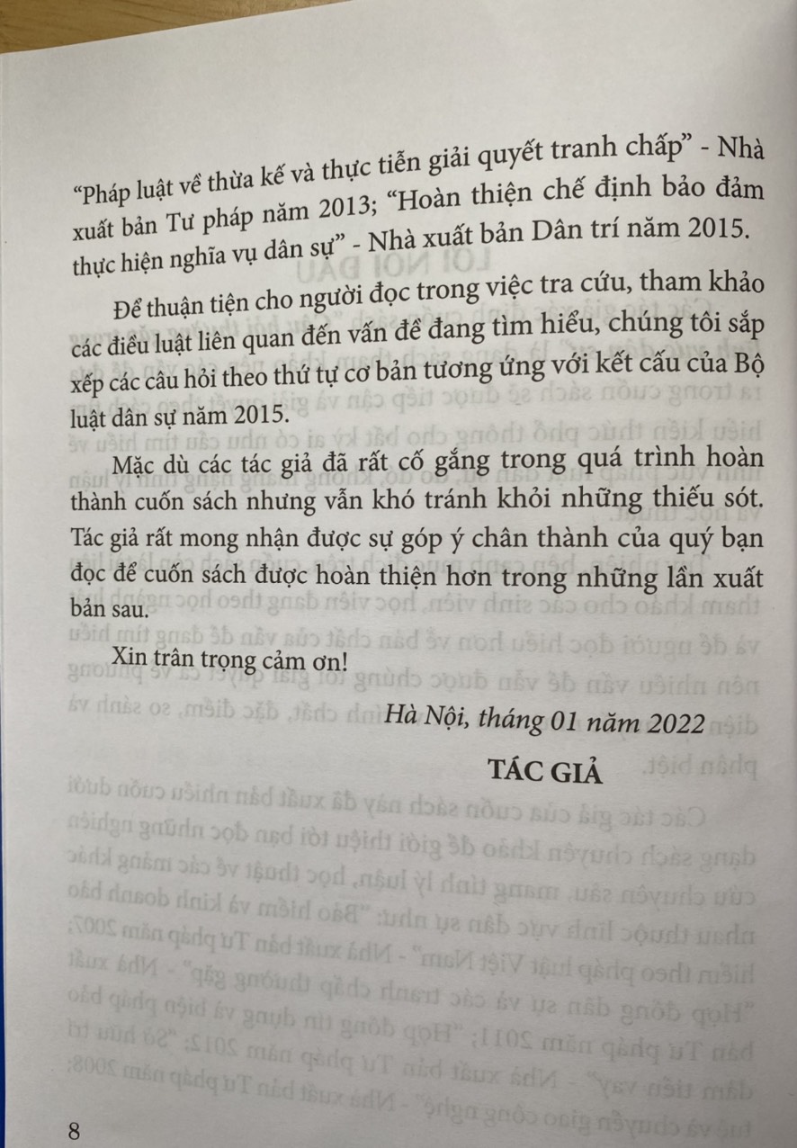 Tuy nhiên, bên cạnh mục đích trên, cuốn sách còn là tài liệu tham khảo cho các sinh viên, học viên đang theo học ngành luật và để người đọc hiểu hơn về bản chất của vấn đề đang tìm hiểu nên nhiều vấn đề vẫn được chúng tôi giải quyết cả về phương diện lý thuyết như xem xét về tính chất, đặc điểm, so sánh và phân biệt.